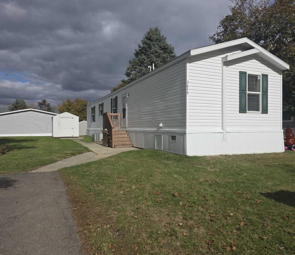 The large outdoor shed provides plenty of space for tools, seasonal decor, and anything else you want to keep organized.